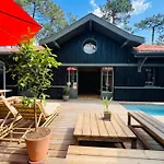 تتميّز Villa Sangla - Acces Plage - Piscine - Climatisation Lège-Cap-Ferret المواجهة للشاطئ بالشرفة مع إطلالات على البحر، فضلاً عن المسبح الخصوصي.